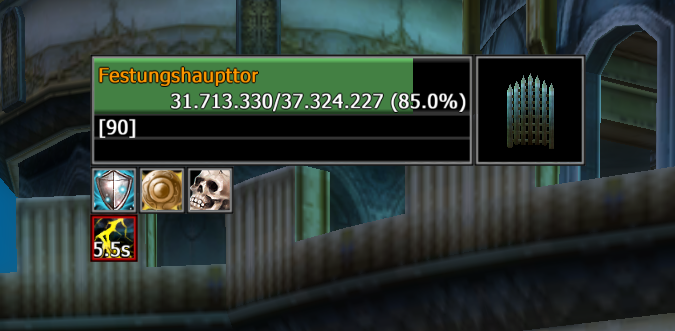 We destroyed enemy guild main gate , they rebuild all gates etc , we got back in and their Main Gate was Green and only damagable by AoE´s.