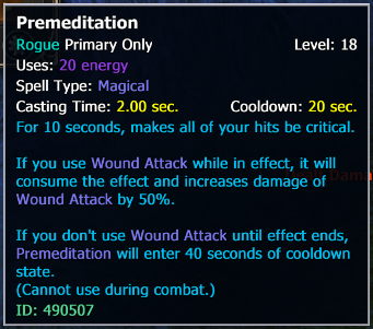 One aspect that i fount really odd in the Rogue/Bard is the behavior of Premeditation. Specifically, it vanishes upon executing "Combo throw + throw". Conversely, when initiating "combo throw" with any other ability, the buff effect persists for the entire 10 seconds.
