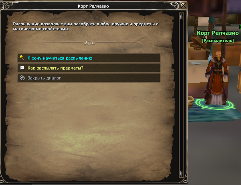 Подскажите пожалуйста, какой НПС учит навыку "Распыление"? Одним из старых своих персонажей выучила этот навык и забыла где это можно сделать.