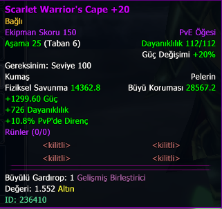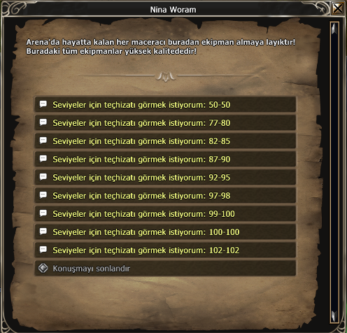• Seviyeler için teçhizatı görmek istiyorum: 102-102
