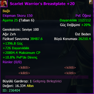 • Seviyeler için teçhizatı görmek istiyorum: 92-95