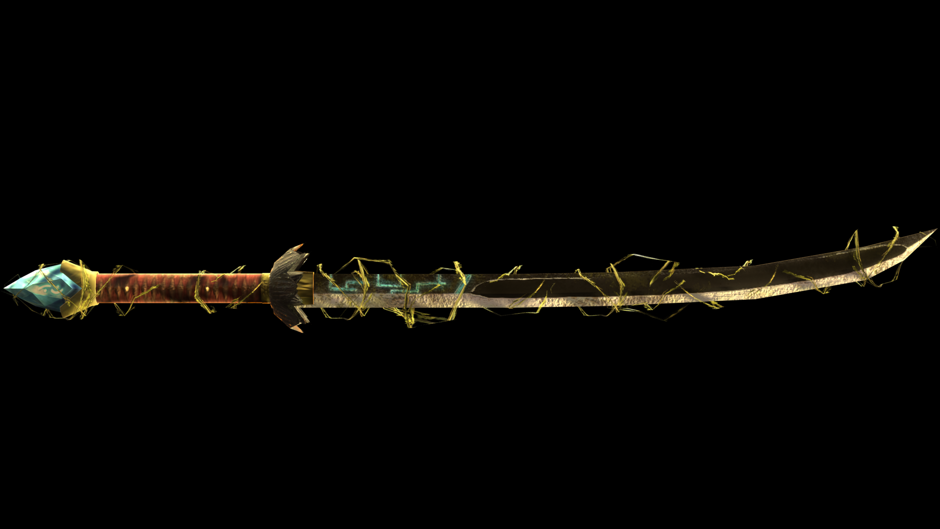 I felt quite inspired today, so I made for the armor, I designed recently, a weapon concept, the type of weapon is an ancient-looking katana. Additionally, it also has a rune engraving and channels through which it will be supplied with magic.