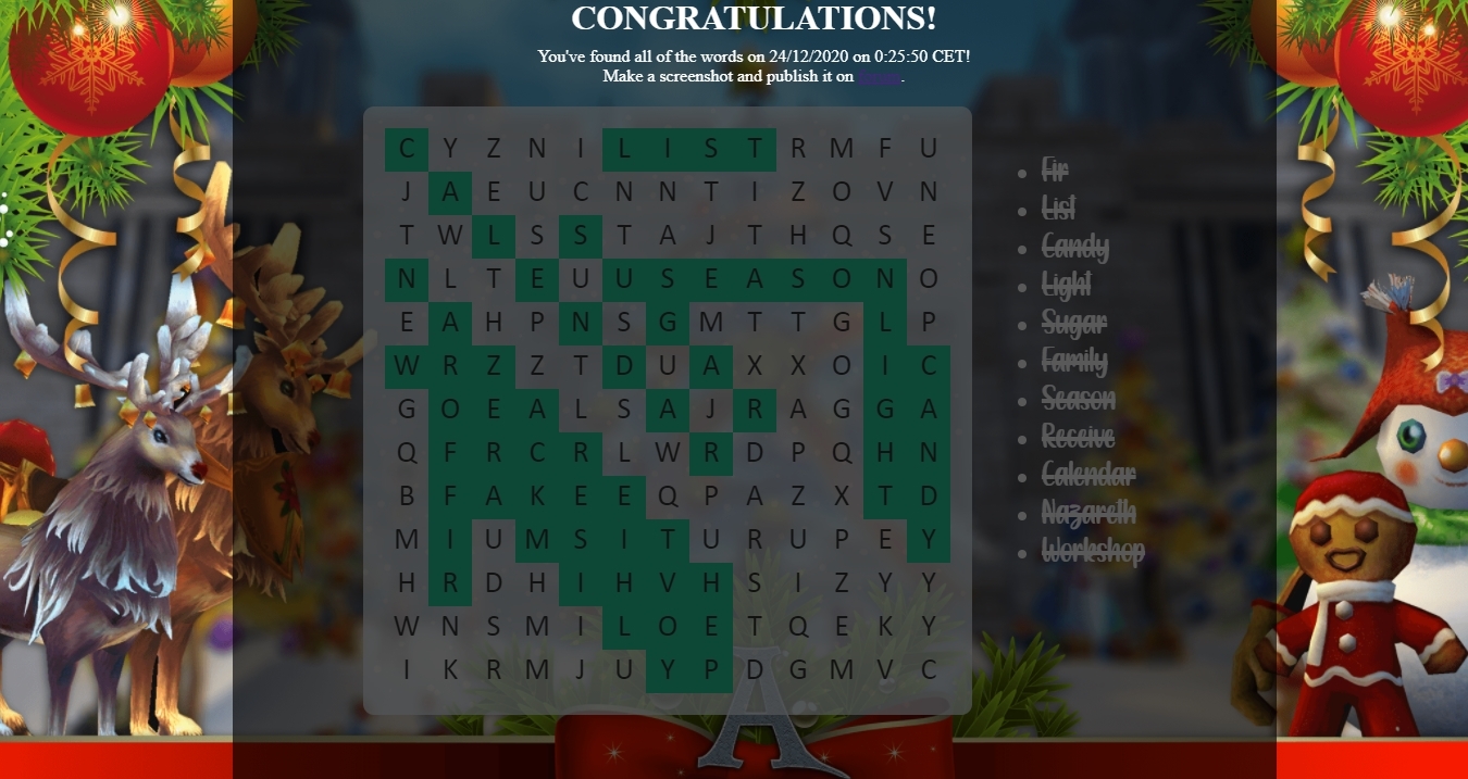 Chronicles of Arcadia - Special Christmas Word Search scrub 24 Dec 2020 https://playernetgames.net/wordsearch/