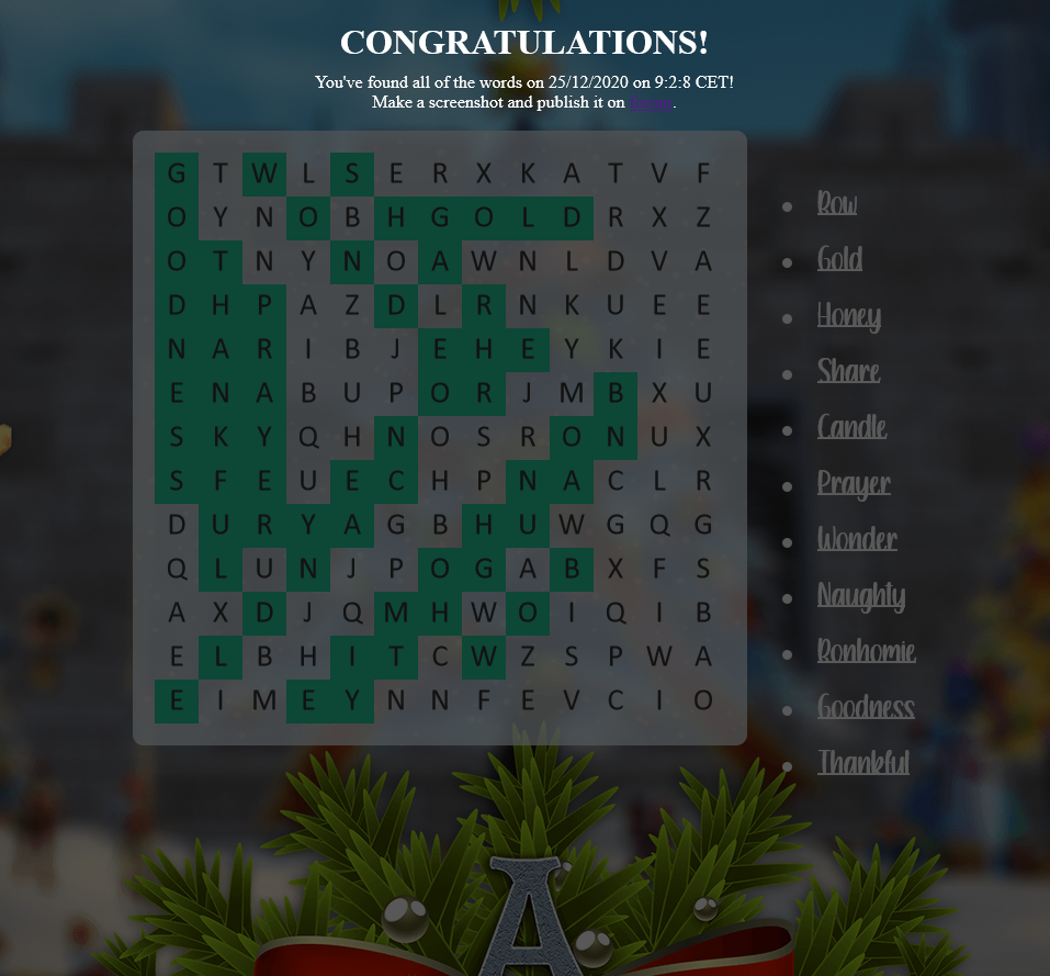 Chronicles of Arcadia - Special Christmas Word Search