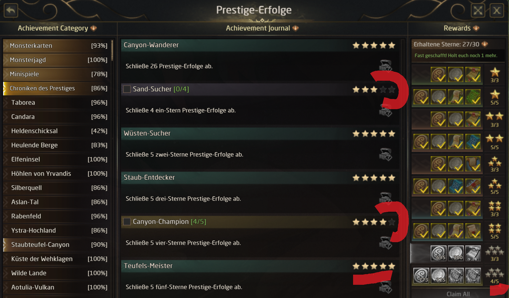 In Aslan it shows i need 26 prestige achievements, although i think they are completed.