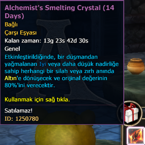 When using the in-game item Alchemist's Smelting Crystal (ID: 1250780), certain items looted from bosses are automatically sold. Unfortunately, this results in unwanted consequences for players.