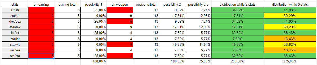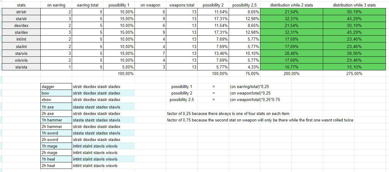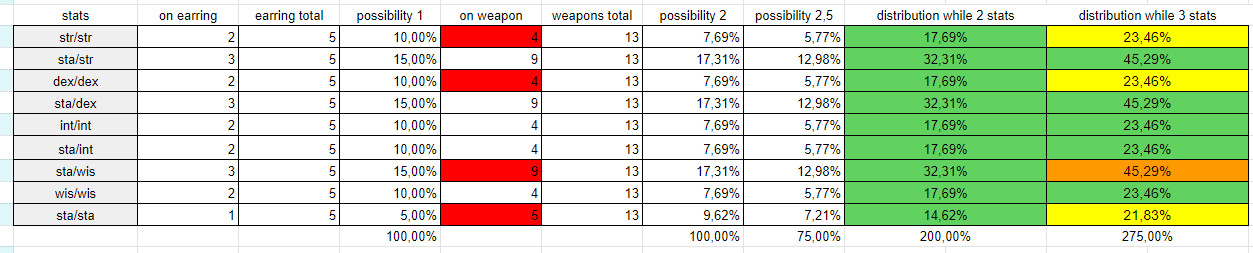Also I think that on Loki in Inferno the distribution of stats on the dropped weapons was different, for example sta/sta and sta/wis did also roll on 2h swords (and 2h hammers?) afaik and str/str and dex/dex did not.