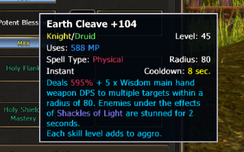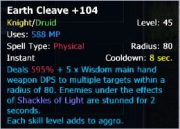 In one hand the Knight/Druid , got three Aoes to get the threat from the mobs , like the Knight/Rouge. But the Skill Earth Cleave does way to low aggro on mobs.