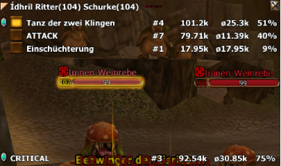 In this case you see there are 2 mobs, one which i hit onetime critical and one hit normal and the second mob which i hit two times critical.