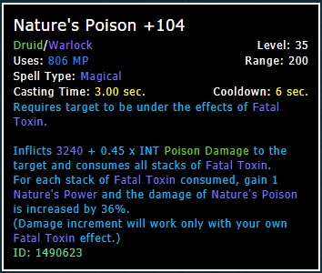 The combo of this class is Toxic Arrow (3x stacks) and Nature's Poison. I just found out that the first stack of the toxic arrow isn't increasing the dmg of Nature poison, only the last 2 stacks do it.
