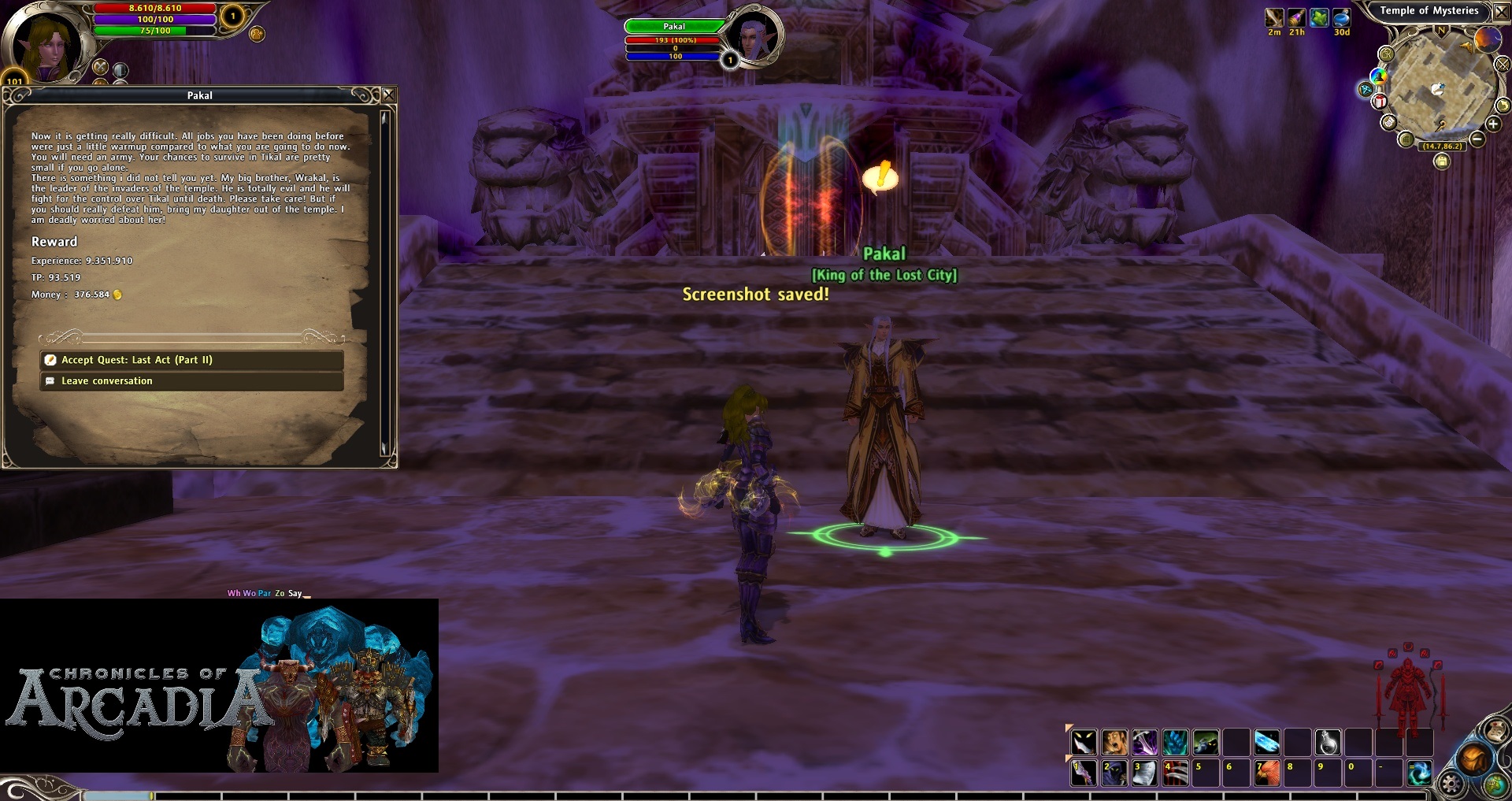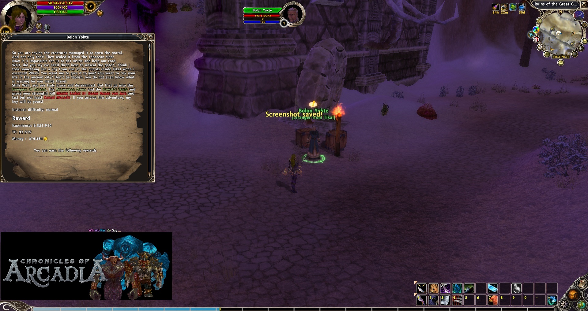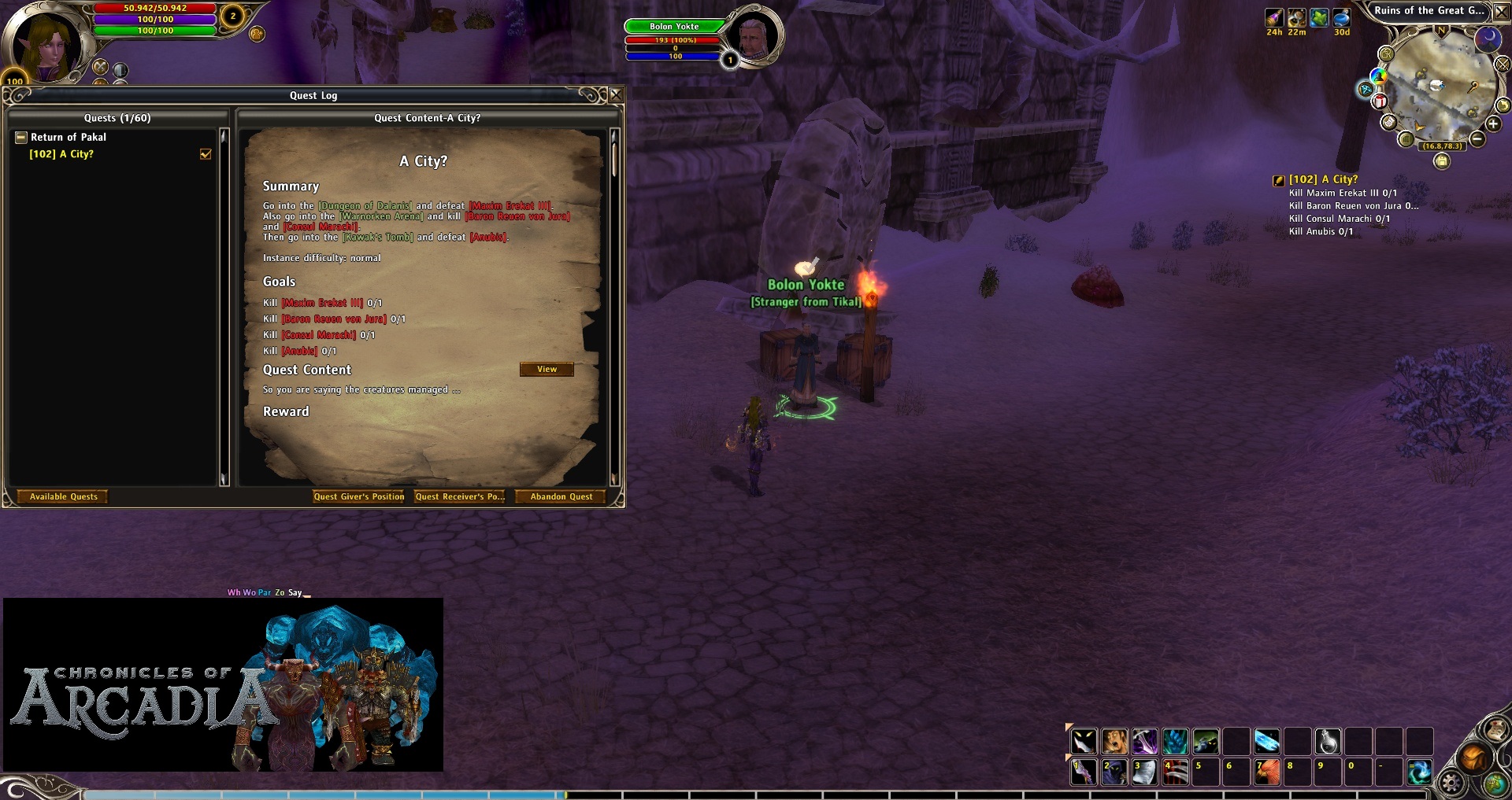 This is a step by step guide about the necessary quests to enter Secret Temple of Tikal. It will be the beginning of all custom instances created in Chronicles of Arcadia and the first way to the End-Game of this server.