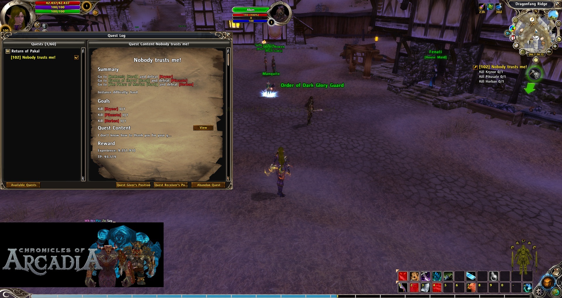 Nobody trusts me!: This quest is given by the same Alom in the city and is the second big adventure of this chain. This time the instances are harder.
