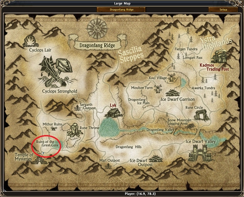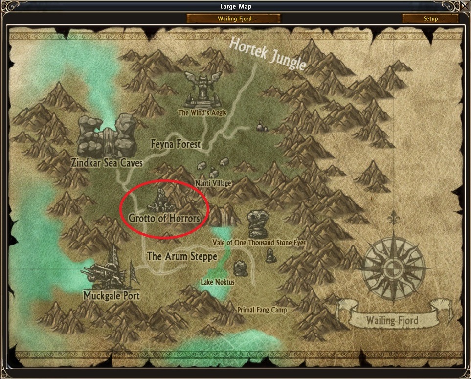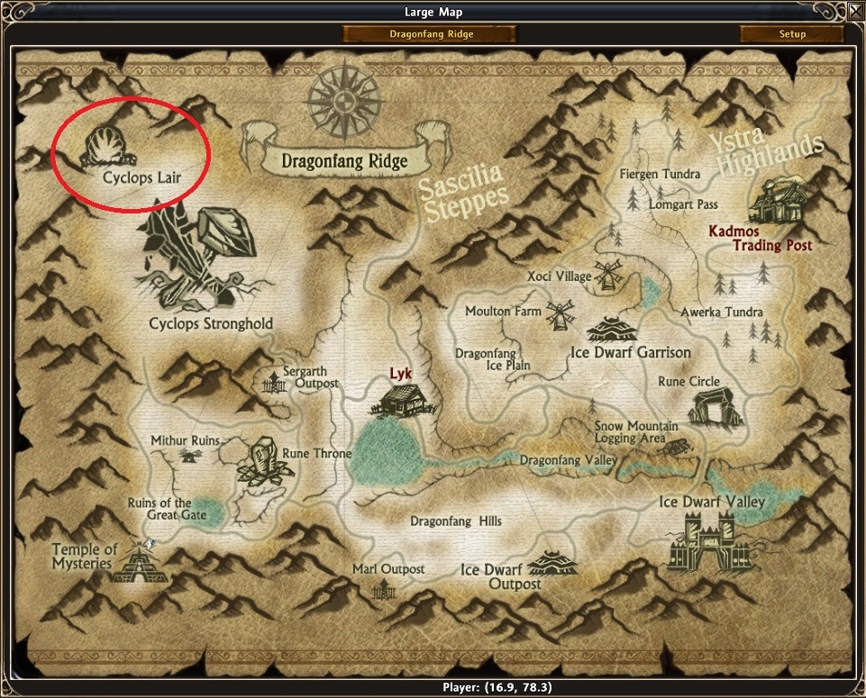 It’s in Dragonfang Ridge map (same map as most of the quests but at the northwest) in the continent of Candara. Go there by walking is hard due to how messy and twisted this whole zone is. I recommend, more than ever, to use the Black Codex Transport Spell. Cyclops Lair was the first custom instance ever created in Chronicles of Arcadia.