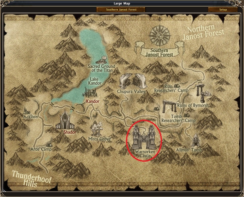 It’s on Southern Janost Forest map and in the continent of Zandorya. The instance is at the south of the map. The portal is at the entrance of the castle, going down using the stairs. This instance is different to the rest, it only has bosses and not mobs. You have to summon them talking to the NPC inside the arena.