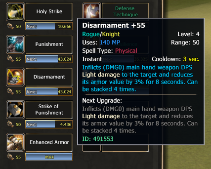 Hello R/K skill id 491553 "Disarmament" no longer deals any damage after learning level 15 elite "Armor Breaker" skill id 491551