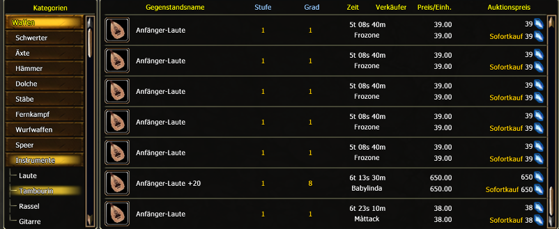 Hello, if u use the instruments-> Tambourin filter in the auction House only Lutes get listed Kind Regards Jockels