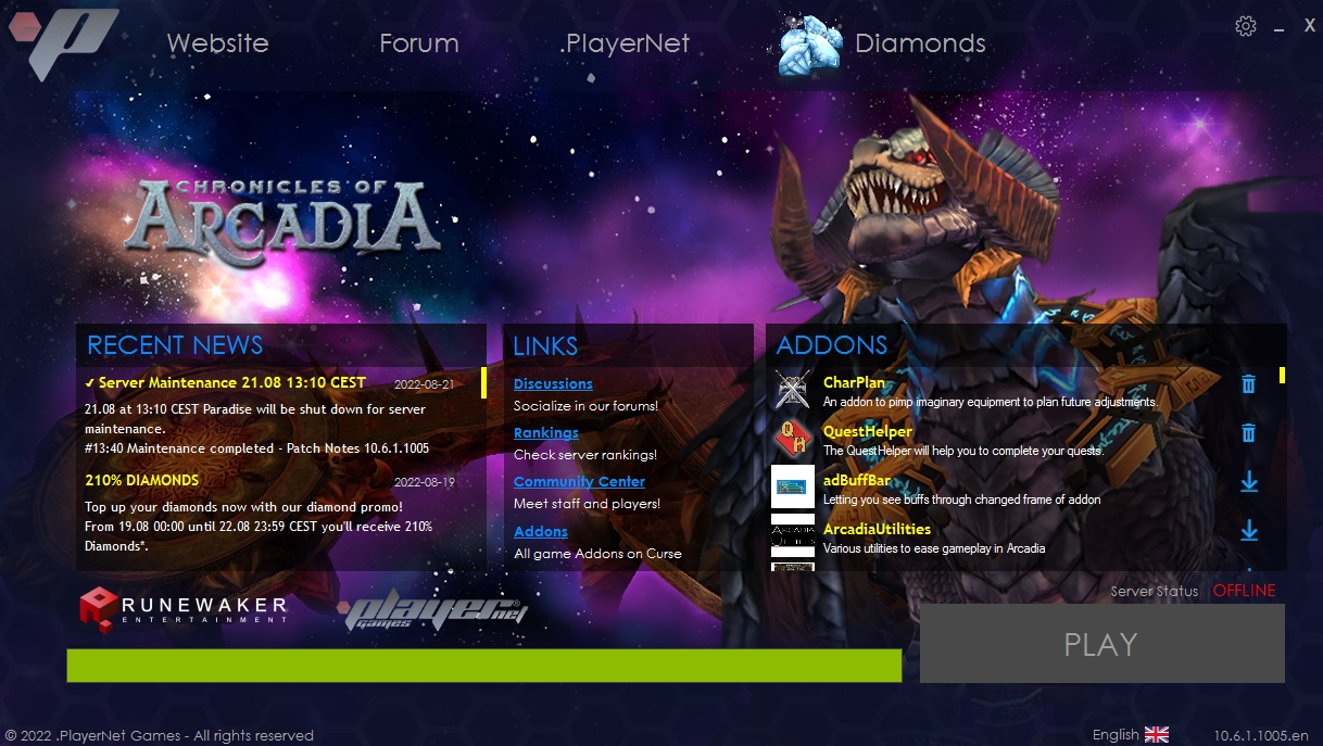 Launcher will show you offline status if there's any issue with connection between it and game server.
