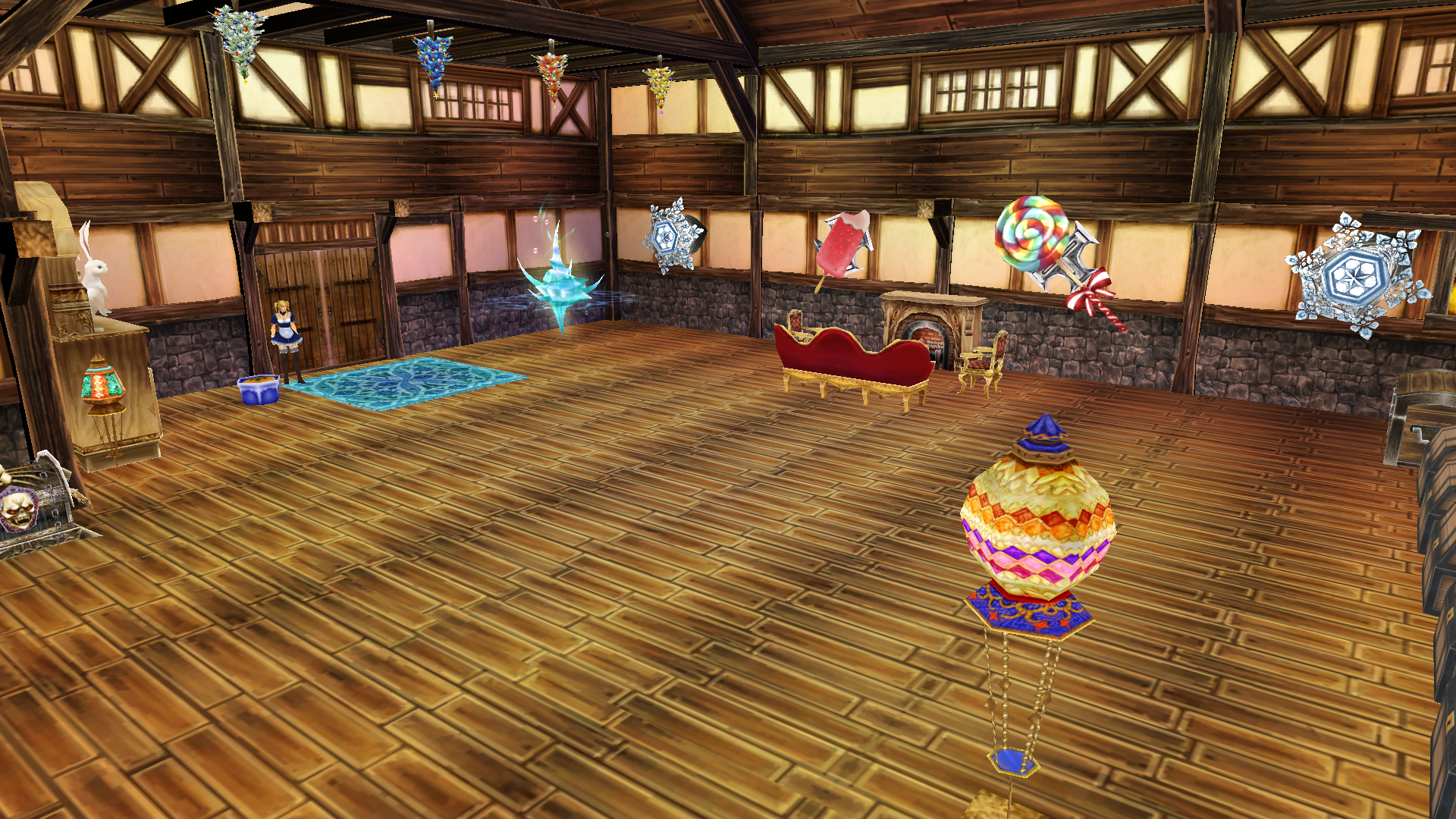 My second place was way bigger than first. I got myself way more decorations this time. All my crafting furnitures are place upstairs, so my first flor is for rest and fun activities only