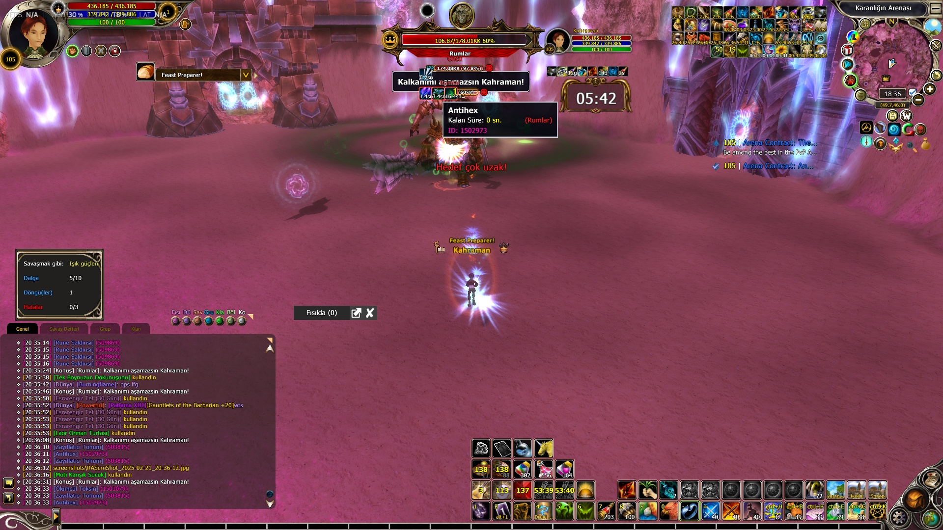 - In Arena of Darkness, the boss 139598 [Öncü] sometimes uses a skill called 1502973 [Antihex], and when he uses this skill, he always kills me because he deals at least 8,000,000 damage. Is this normal?
