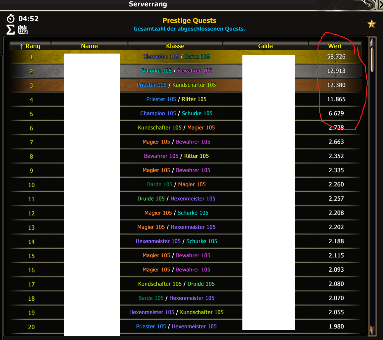 For the Prestige-Quest-Section, there is a ranking, for completed Prestige Quests.