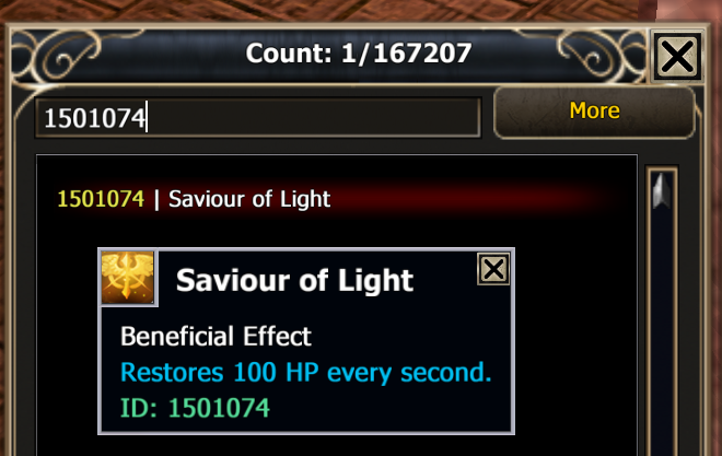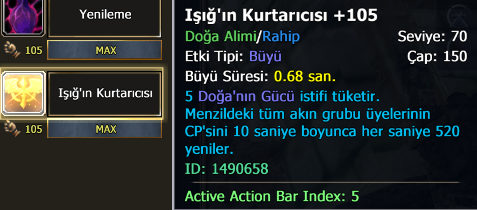 When I use the Druid/Priest skill 1490658 [Light’s Savior +105], I receive the buff 1501074 [Light’s Savior] for 5 seconds (buff text: “Restores 54.088 HP per second.”).