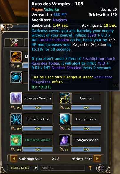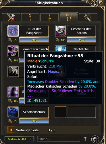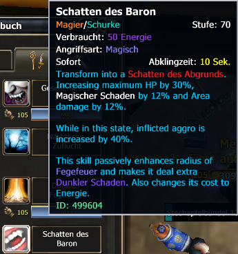M/R: Bei folgenden Skills wurde nur teilweise übersetzt, (besonders bei komplexeren Skills wie Kuss des Vampires oder Skills mit langer Skill Beschreibung Schatten des Baron. Ist es für Spiele mit kaum Englisch Kenntnissen schwierig die Mechanik dahinter zu verstehen).
