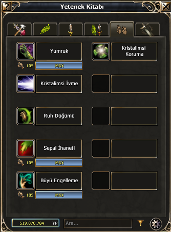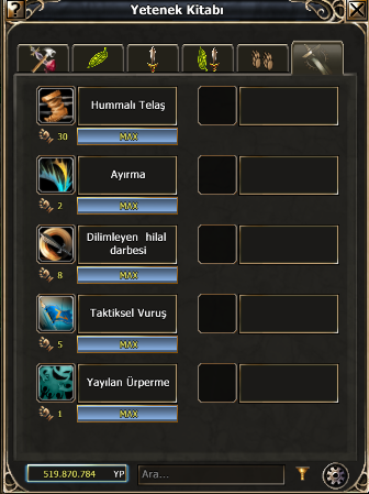 - Resim PVP aittir. Burada görüleceği üzere Yardımcı yeteneklerim son olarak görünmektedir.