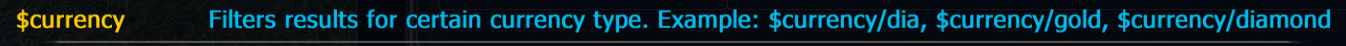 e.g. I want to see only auctions for diamonds, or only for gold currency