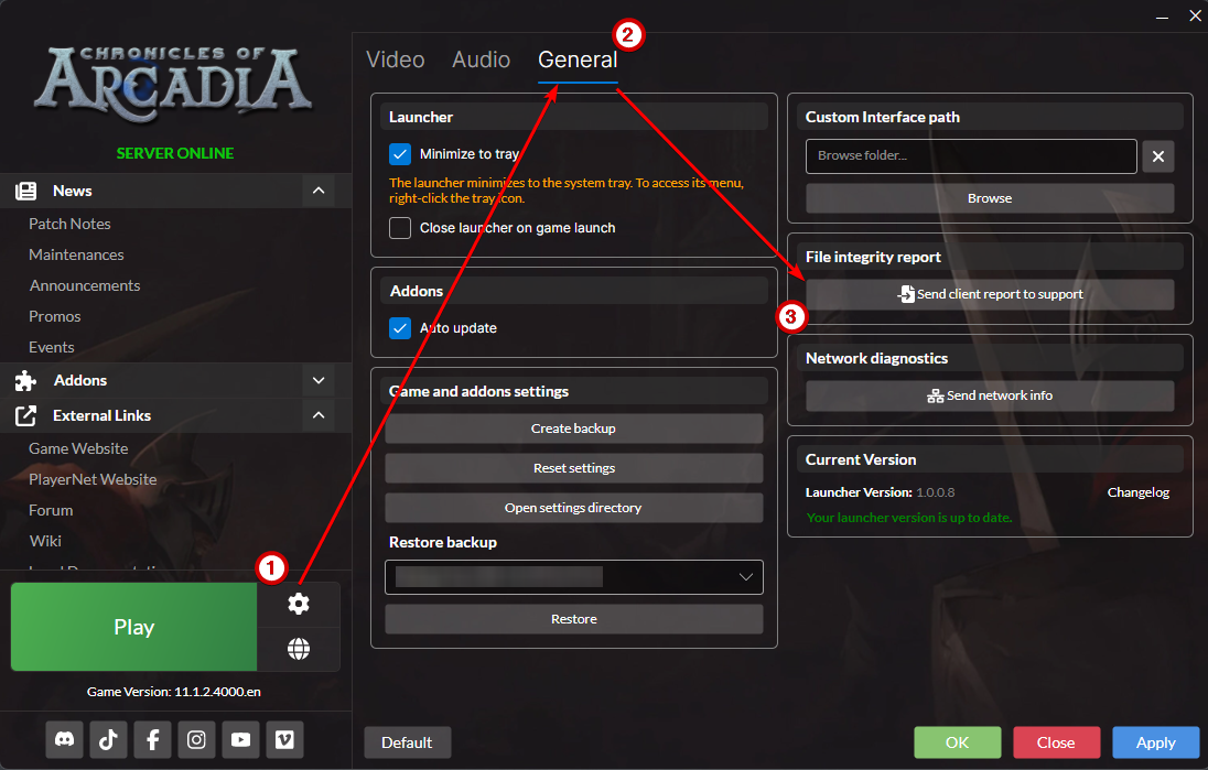 - Open the launcher and navigate to the ⚙️Settings > General section.
