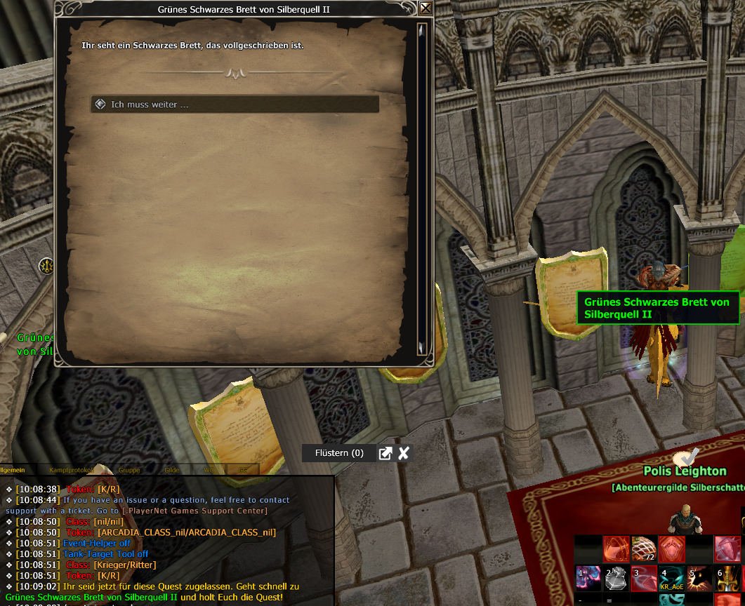 I talk with Poli Leighton and it says in the chat "Go to the green board nr II and get the quest", but the corresponding board is empty. I also tested every other board and they are empty too. Waiting for another day didn't solve it, I have this problem now a few days.