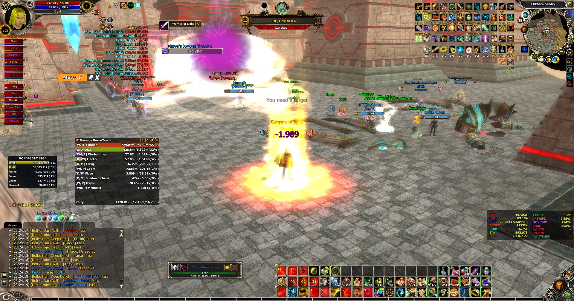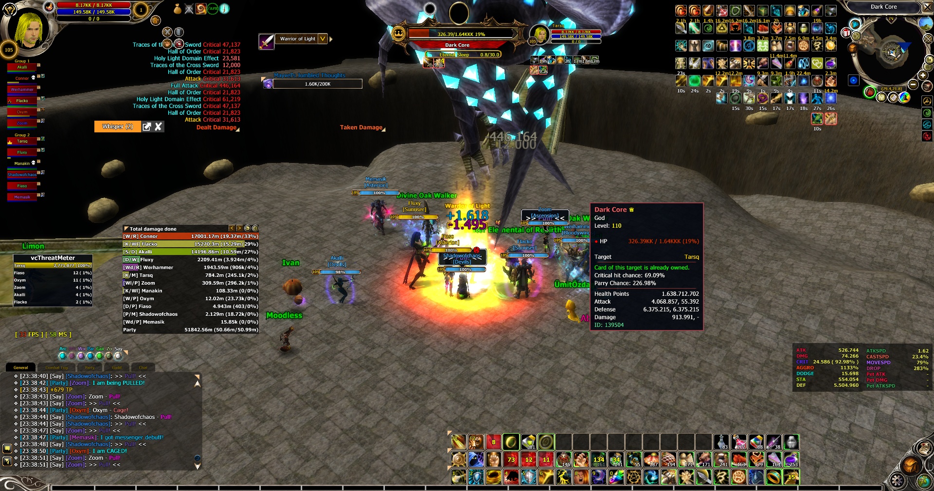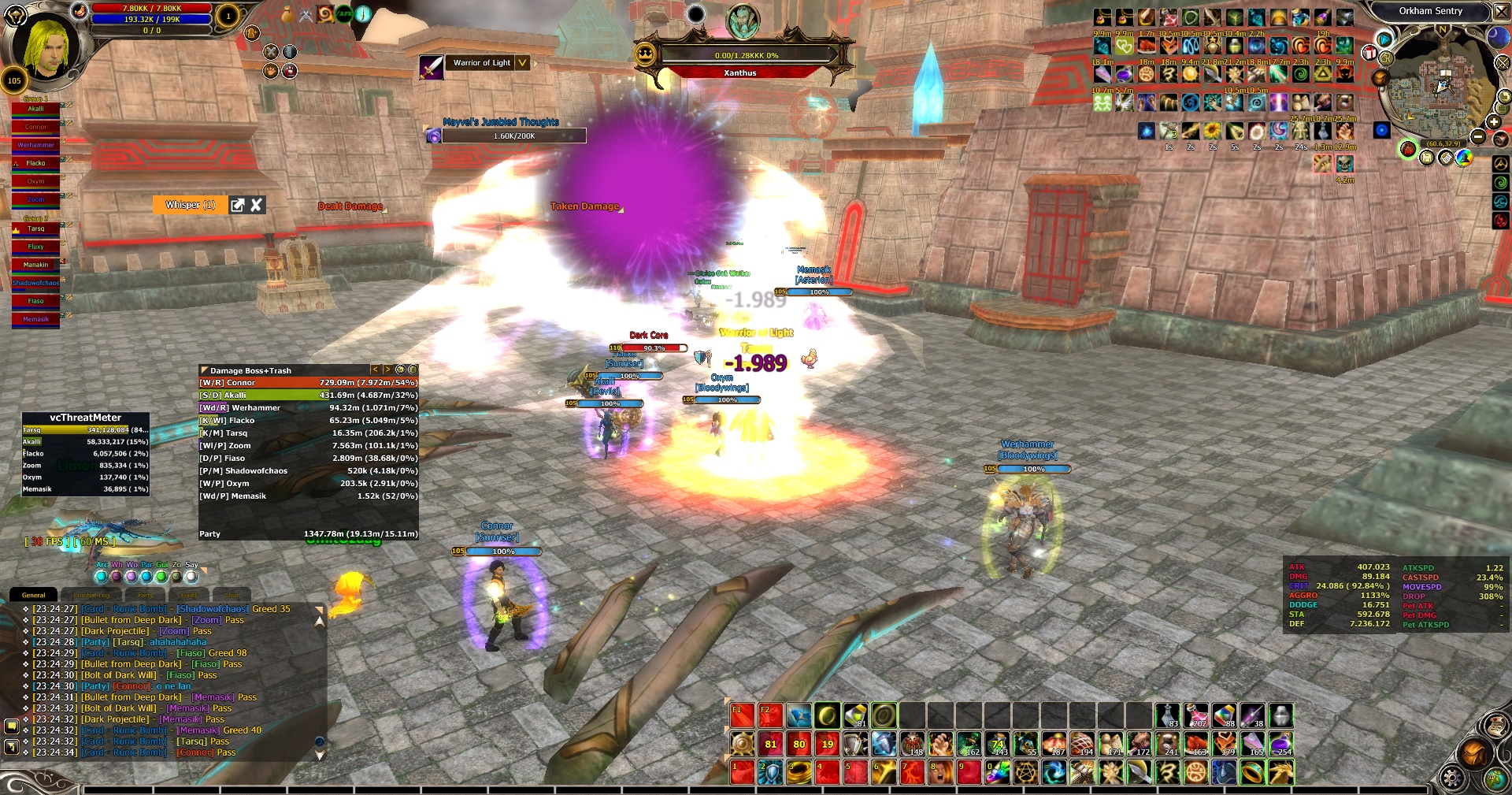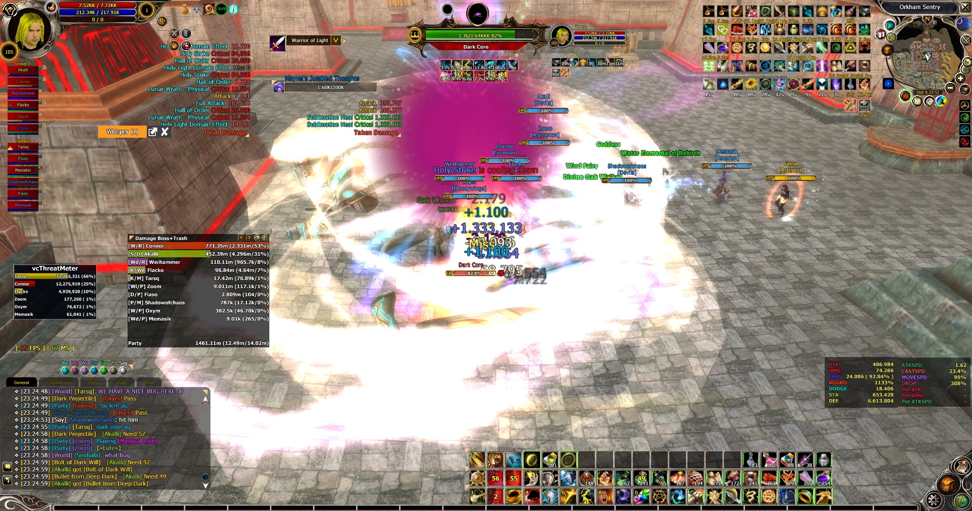 Hello everyone, This night we discovered an insane bug in Dark Core instance in 4th Boss. As you already know, if you cant kill Xanthus Boss last boss will appear in boss room and wipe out your whole party. But this time some crazy stuff happened. When last boss appeared in boss room, Xanthus boss was at like 1% HP left. We killed Xanthus boss but last boss was still there. I thought last boss would disappear also a few seconds later. But he never did. So, we had to kill this boss also. We killed him and cleared instance untill last boss. And guess what happened ? Last boss was still there ! So, we killed Dark Core 2 times in same instance. I think something like this never happened before in this server.