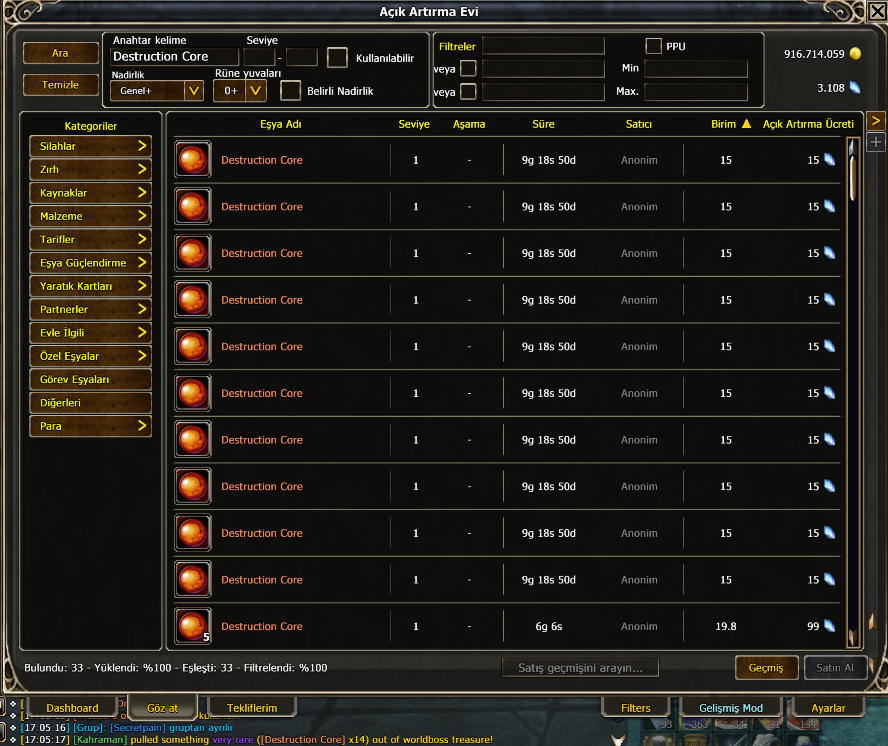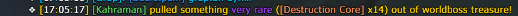 Please consider removing Destruction Core (ID: 1249208) from the “valuable drop” list for World Bosses.