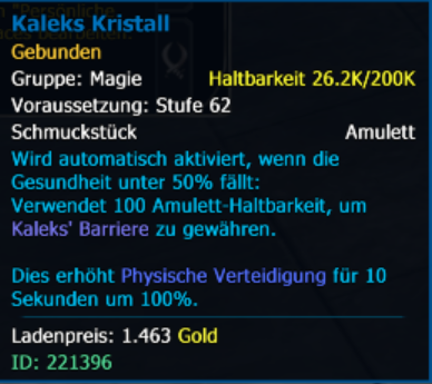 I know, this one might not be often used, but as of now, the amulet Kaleks Kristall triggers whenever its off cooldown and one is below 50% hp. This includes when you switch gear after a class change and therefore it's frustrating to see it burn its durability in cities, while farming with a second class or just while testing things out.