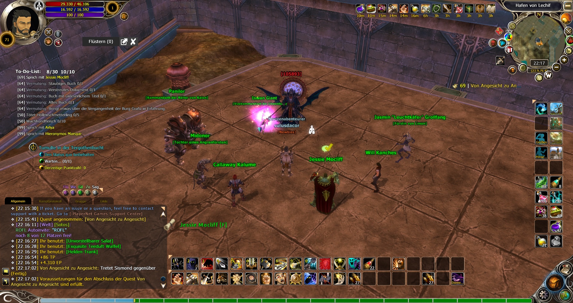 the first time you meet the guy his name is a number. quest is "von angesicht zu angesicht", but the issue was persistant during the whole 'face off' situation in the harbor of the Terhothen Bay Castle. on later parts of the quest line this was fixed.