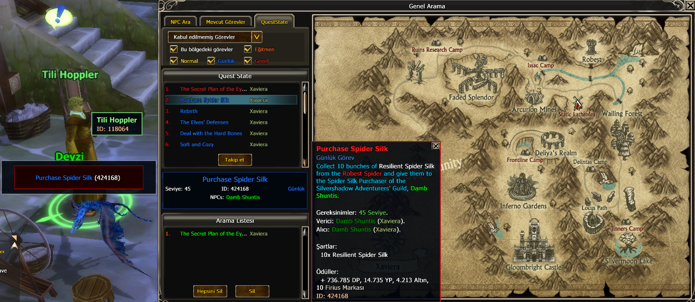 Does anyone have any information about this? How can I get 424168 [Purchase Spider Silk] quest?