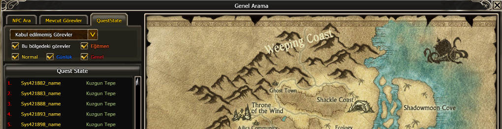 While exploring the Ravenfell map and checking for unfinished quests using the QuestState addon, I noticed that the following quests remain incomplete:
