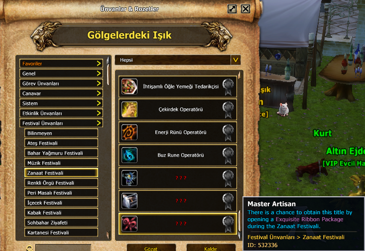 During the Crafting Festival, I noticed that the title [532336] Master Artisan can only be obtained by purchasing [1249414] Exquisite Ribbon Package from the NPC Eldoria (163662), which requires Festival Ribbons as currency.