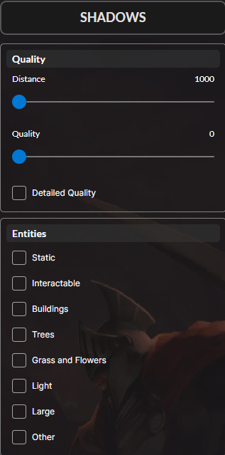- Improving shadows casted by large objects (movement, camera rotation, distance).