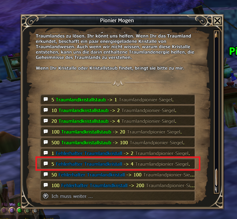 Hey guys, I discovered an incorrect exchange value at the NPC Pioneer Mogen (GUID: 115696) It should be 5 --> 10 dreamland sigils.