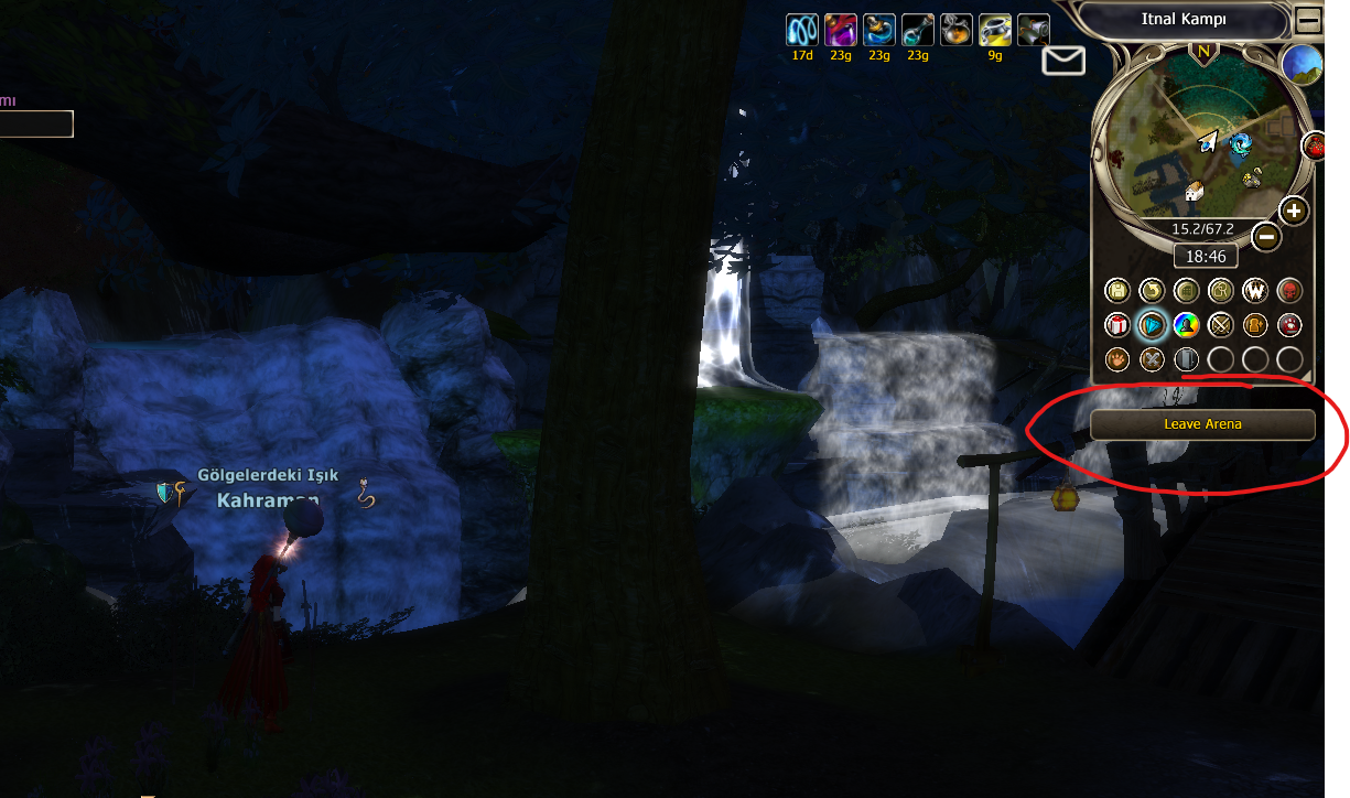 • After entering Visdun Fortress and clicking the "Leave Arena" button (top-right corner) because no enemies were present, I successfully left the arena. However, the "Leave Arena" button is still displayed on my screen and does not disappear. It stays there permanently, even outside the arena.