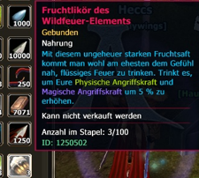 At level 5 the item is now translated with the name "Fruchtlikör des Wildfeuer-Elements" and has a complete different ID (1250502).