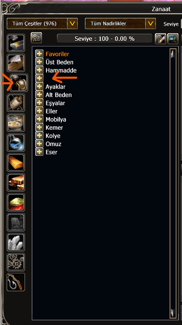 🧵 In both of these crafting tabs, there is a missing category title between “Hammadde” (Materials) and “Ayaklar” (Feet).