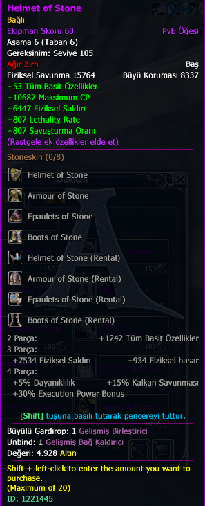 When I check 1221445 [Helmet of Stone], it shows 4 normal set pieces.