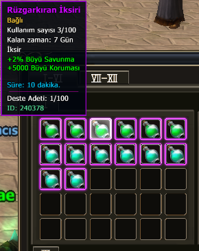ID : 240378 (Rüzgar Kıran İksiri) and 240377 (Bariyer İksiri)