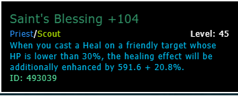 When you cast a Heal on a friendly target whose HP is lower than 30%, the healing effect will be additionally enhanced by 591.6 + 20.8%.