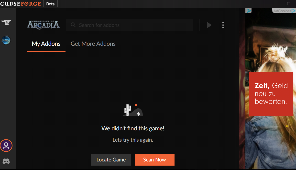 I meant gray "Locale Game" button in CurseForge app you did screenshot of - it might let you select directory so you can select your directory manually.