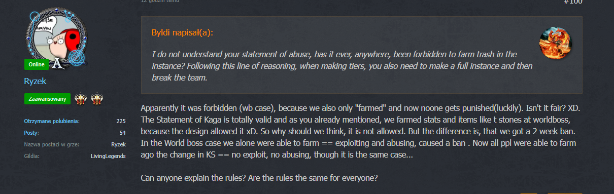 I would like to point out that I sign with both hands and feet on what Madoxx wrote, I have been observing such moods in my guild and more broadly on the server for a long time. I think he wrote what many of us think and the fact that it gets diplomatically ignored of is very sad to me.