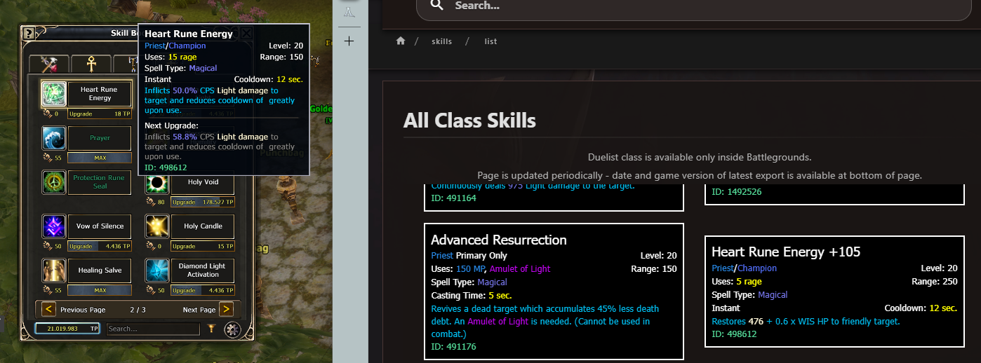 The elite skill Heart Rune Energy is not doing the same thing in game and from the Wiki. Skills List | Chronicles of Arcadia Wiki