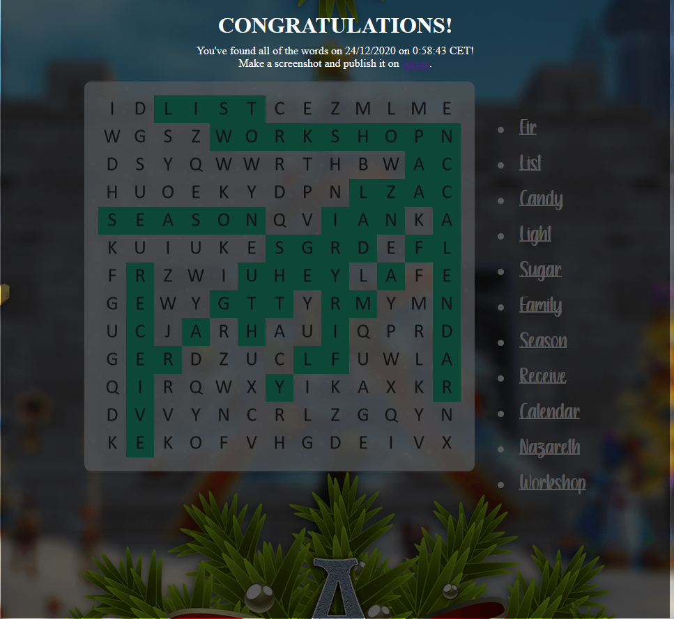 Chronicles of Arcadia - Special Christmas Word Search
